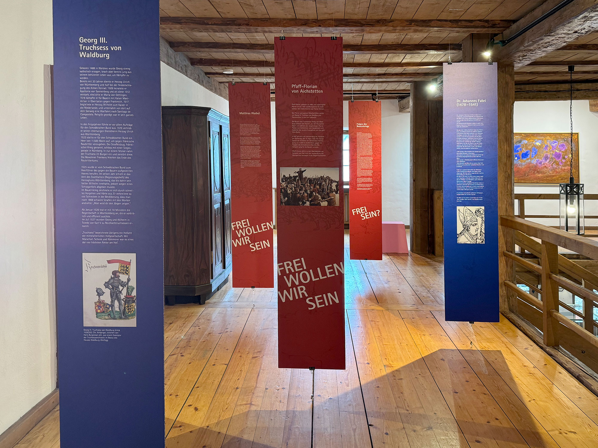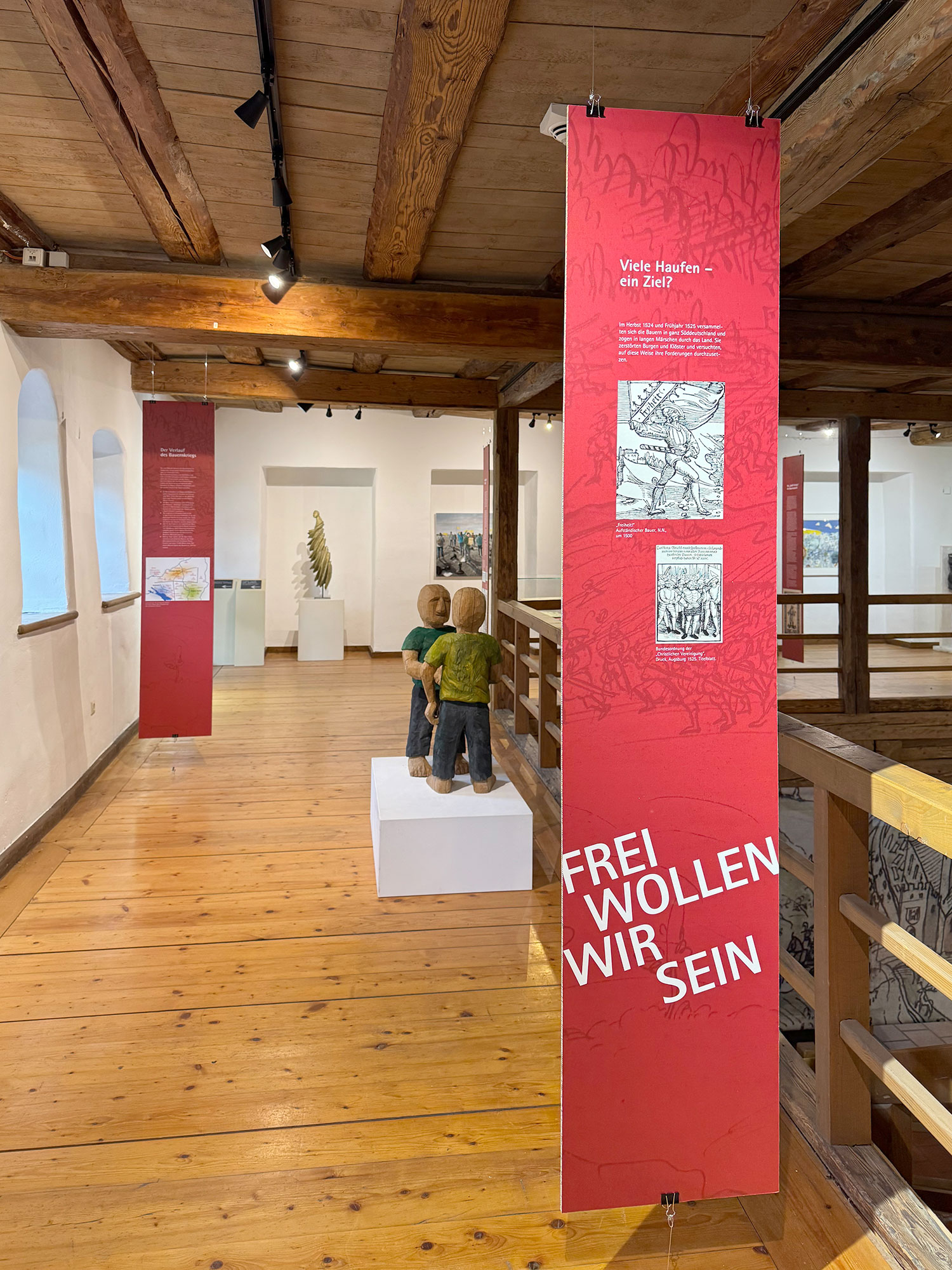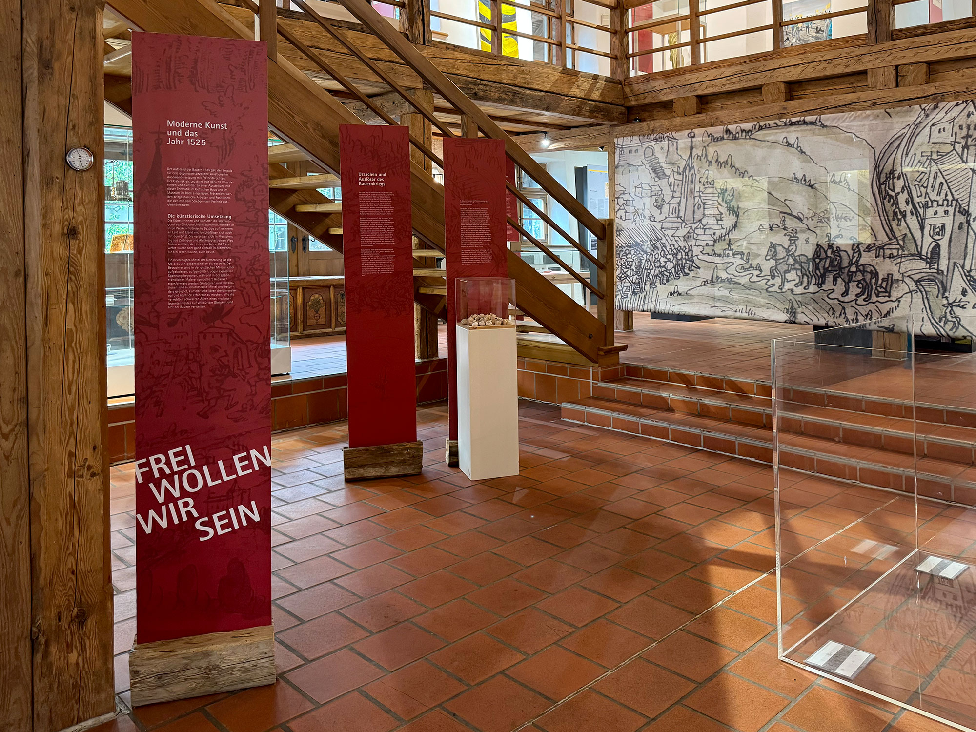 Der Aufstand der Bauern 1525 gab den Impuls für eine gegenwartsbezogene künstlerische Auseinandersetzung mit Freiheitsrechten. Der Galeriekreis Leutkirch hat dazu 38 Künstlerinnen und Künstler zu einer Ausstellung mit dieser Thematik im Gotischen Haus und im Museum im Bock eingeladen. Präsentiert werden zeitgenössische Arbeiten und Positionen, die sich mit dem Streben nach Freiheit auseinandersetzen. Die Heimatpflege Leutkirch hat den historischen Teil des Bauernkrieges aufgearbeitet und vermittelt den Inhalt in der Ausstellung im Museum im Bock.