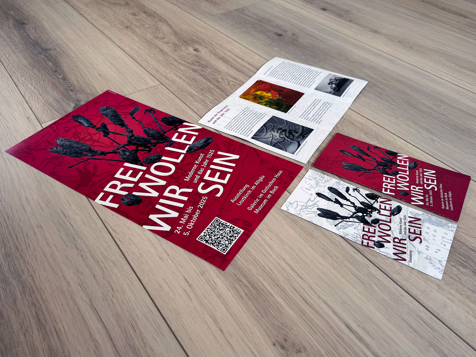 Konzeption und Gestaltung der Ausstellungsdidaktik und der Drucksachen zur Sonderausstellung „Frei wollen wir sein“ im Leutkircher Museum im Bock. Planung und Umsetzung der Ausstellung, Erstellung von Ausstellungstafeln und Exponatbeschriftungen. Gestaltung und Realisierung von Flyer und Einladungskarte, Eintrittskarten, Anzeigen, Plakaten und Fassadenbannern.